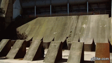 No footage or photo can do really do this spot justice. The dam is huge and before this happened a lot of people wondered if a drop-in was even possible. There was no margin for error and if he’d missed the gap between the concrete teeth at the bottom it would have been game over.